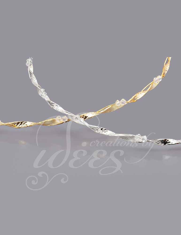 Στέφανα γάμου με φύλλο ασημιού, χρυσού και ροζ χρυσό.